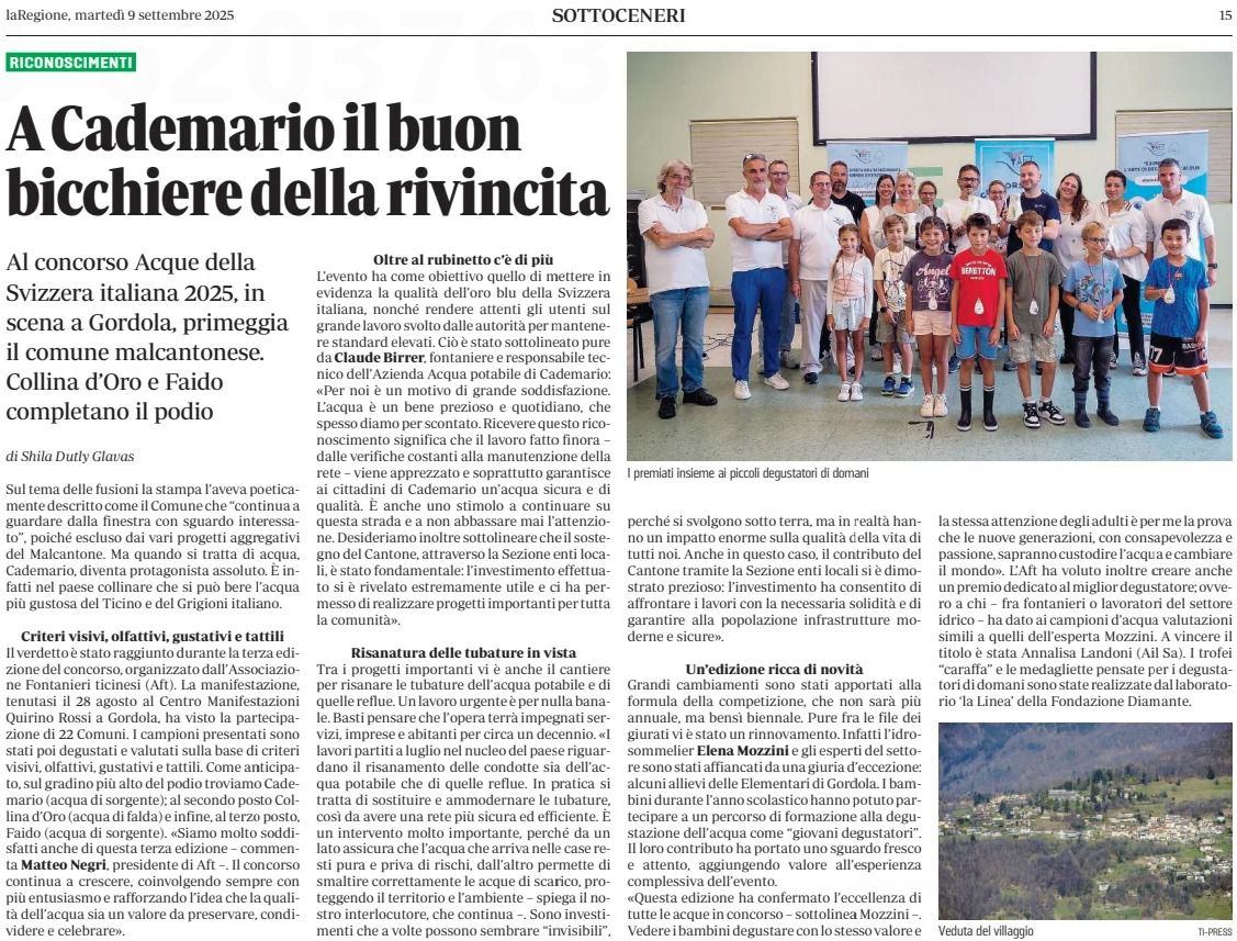 01.09.2025 – “Cademario conquista il primo posto al concorso sulle acque della Svizzera italiana” – tio.ch link all’articolo